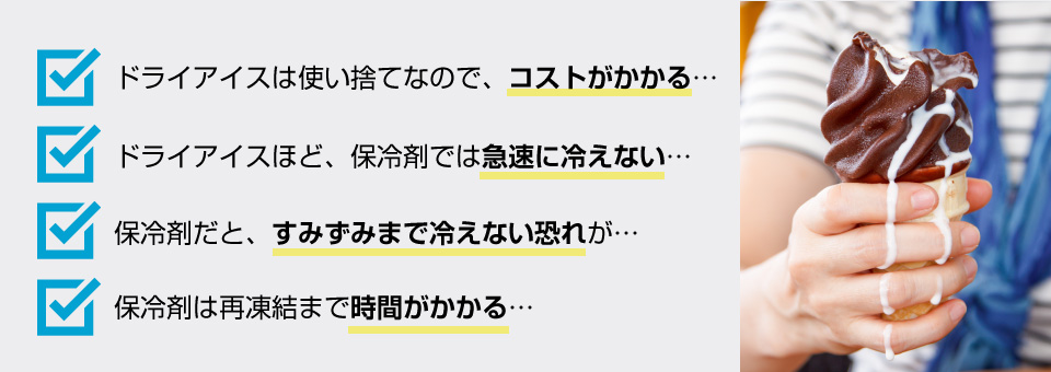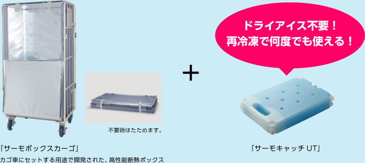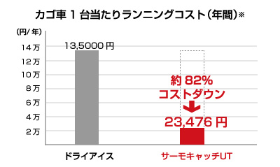 使い捨てのドライアイスからリユース可能なサーモキャッチUTに切り替えることで、コストダウンを実現させることができます。